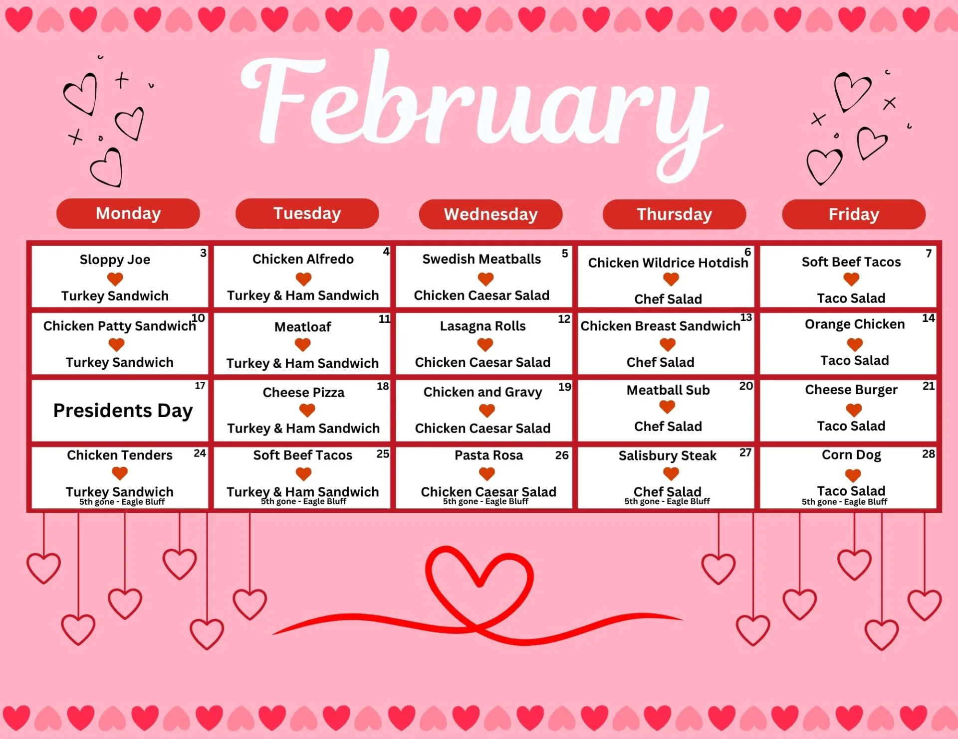 St. Bart's offers hot lunch 5 days a week. Lunch is $5 per meal.